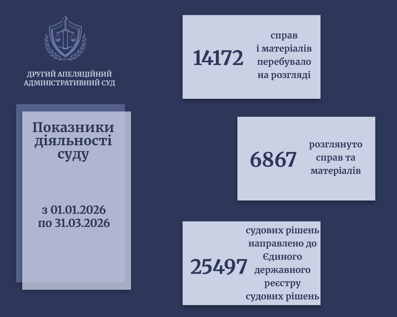 Показники діяльності суду за період 01.01.2026 - 31.03.2026